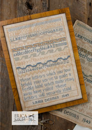 The color scheme and tonal dividing bands in Louisa’s sampler are unique and quite lovely - rather soothing actually. The adaptation with the verse as shown in the model required only some minor tweaks, but is very true to Louisa’s marking sampler. If you prefer the actual reproduction, that chart is also included - as is a collectible full-color alphabet card for easy reference.